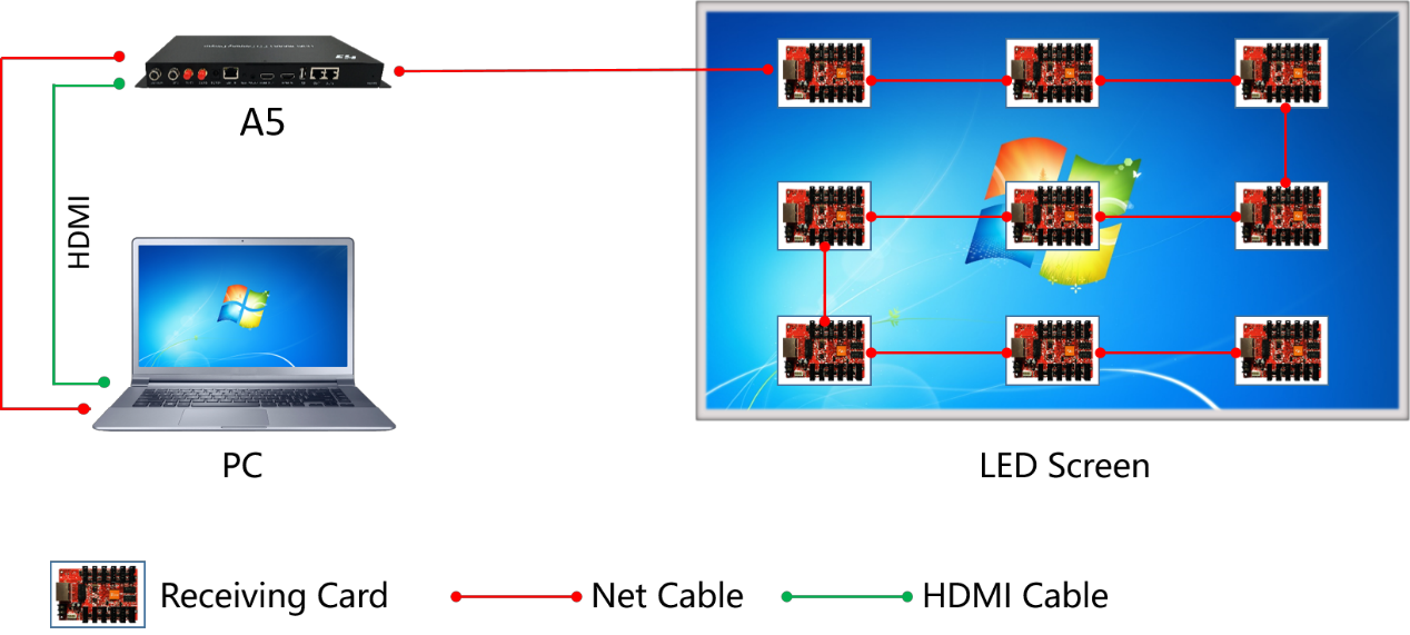 HD-A5 là hộp card màn hình dùng để điều khiển màn hình LED. Hộp card màn hình HD-A5 sử dụng kết hợp với card thu R512, sử dụng thông qua phần mềm HD Player.
